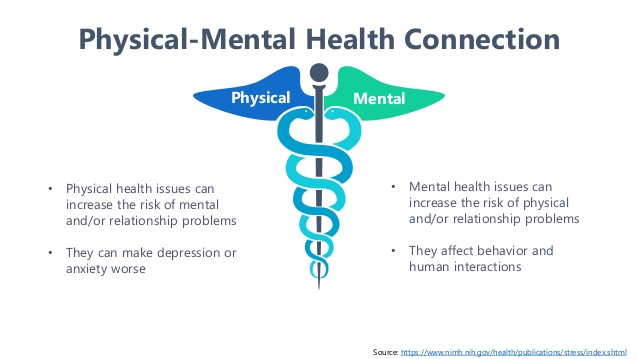 Are you healthy? This goes through people’s mind frequently. Some might think about it everyday; however, being healthy does not focus on your physical appearance. It can apply to your mental state as well. The definition of health is a person’s mental and physical condition. These two are such broad topics to talk about but if you want to improve your health you must focus on both because there’s a cause and effect relationship between them. In order to improve your health you can’t just focus on one because they intertwine no matter how you look at them. I like to compare it to making my favorite dessert. You can add all the ingredients but if you’re missing one it’s just not going to taste the same. This is just like one’s health, if you solely focus on the physical part of your health, you will be lacking somethings mentally. This goes both ways also, if you’re mainly concentrated on your mental health you will soon realize that you’re missing some physical health benefits. It might seem like physical and mental health have no relations, but the science behind it is true. Stay tuned next week for the next blog post!