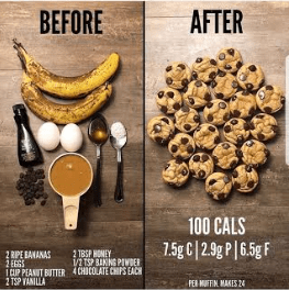 Mix all the ingredients together in a mixing bowl then pour into a greased muffin pan. Then bake at 400 F for 8 minutes. This should make about 24 (mini) muffins and there is approximately 100 calories per muffin.